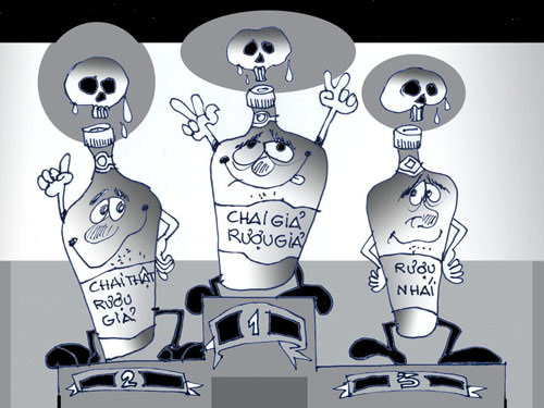 (11:37:50 AM 29/12/2012)Mới đây, cơ quan chức năng TP. Hà Nội kiểm tra và bắt quả tang một cơ sở làm rượu vang giả với quy mô hàng chục ngàn chai. Đơn vị này đã dùng một loại rượu vang trong nước để đóng chai rồi tự in bao bì, nhãn mác của một loại rượu vang ngoại và tung ra thị trường bán với giá cao. Để dễ lừa người tiêu dùng, họ còn làm giả cả tem nhập khẩu... Đại diện cơ quan quản lý thị trường TP Hà Nội cho biết đã xác định số sê-ri tem của các dòng rượu được phép nhập khẩu nên có đủ cơ sở xử lý các đối tượng sản xuất rượu vang giả này.
