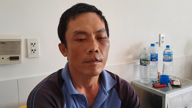 Vết thương trên môi ông Phương vẫn còn in hằn- ẢNH: ĐỨC HUY