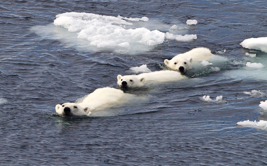 | Ba mẹ con gấu Bắc Cực trốn thoát khỏi một con gấu đực đang muốn chén thịt gấu con |