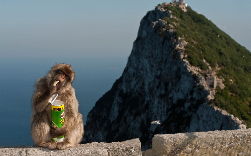 | Chú khỉ thích thú với hộp khoai tây chiên |