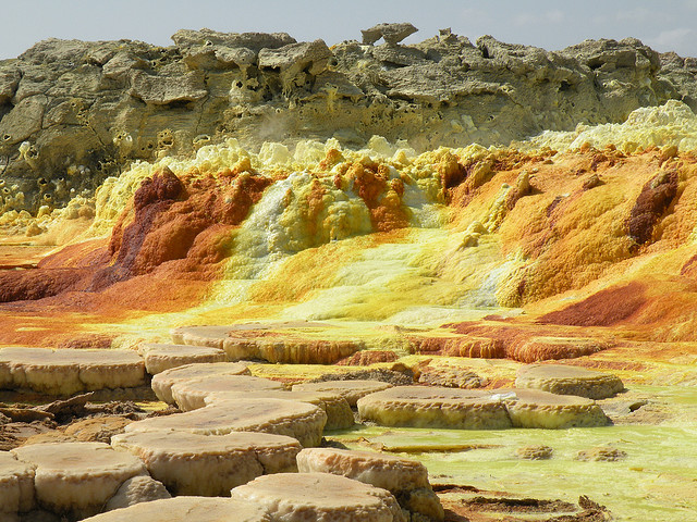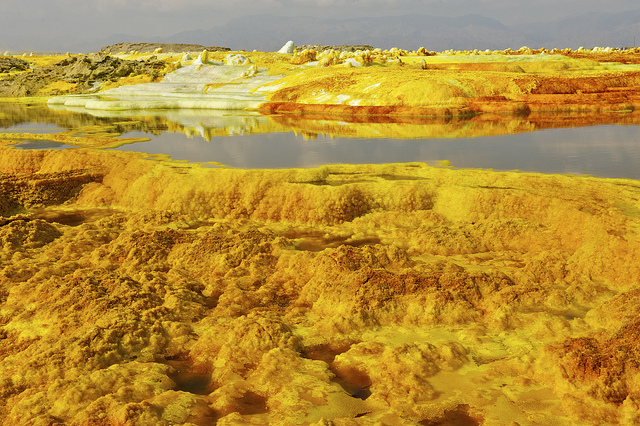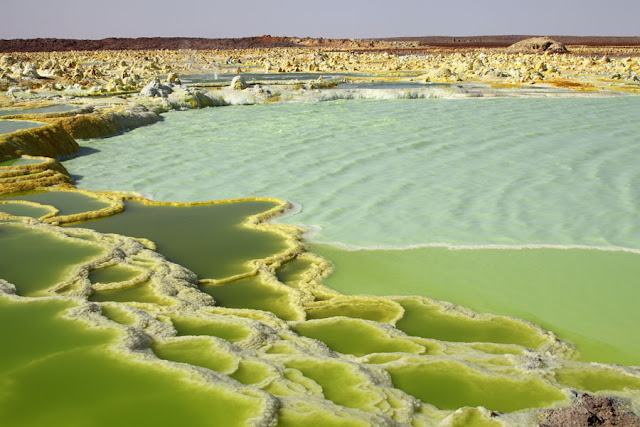 Với nhiệt độ trung bình quanh năm lên tới 35 độ C, đây còn được coi là nơi nóng nhất trái đất có người sinh sống. Đặc biệt, vùng đất này đầy những ao hồ và suối nước nóng rực rỡ màu sắc do ảnh hưởng của hợp chất muối kali.