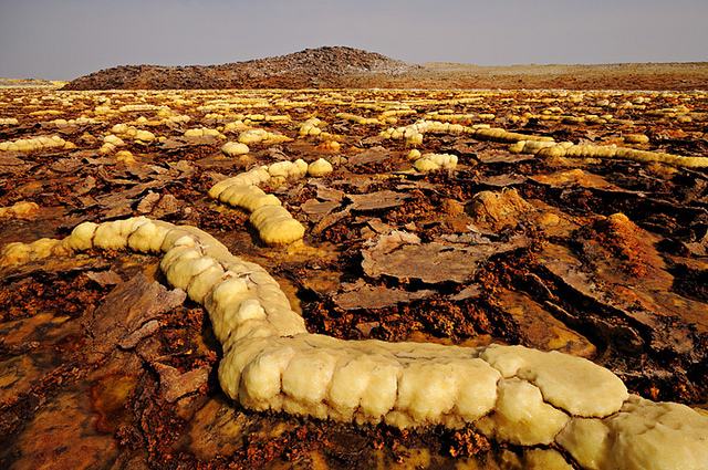 Tên Dallol theo tiếng địa phương nghĩa là “sự hòa tan”, cái tên lột tả chính xác vùng đất này - nơi có đầy oxit sắt, lưu huỳnh và những sa mạc muối.
