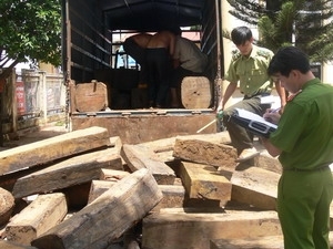 Một chiếc xe chở gỗ quý trái phép bị bắt giữ. (Ảnh minh họa: V.Dũng/Vietnam )