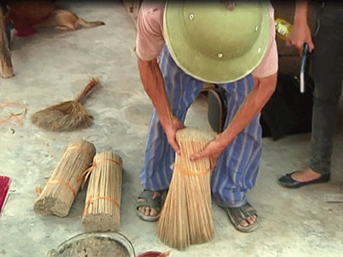 Tại cơ sở sản xuất tăm hương của gia đình ông Thoán, đây là một cơ sở sản xuất lớn vì mỗi ngày sản xuất khoảng 100 bó hương. Cũng theo ông, lượng tiêu thụ tăm hương hàng ngày khá lớn, có nhiều ngày thiếu tăm, gia đình ông phải sang mua thêm từ các hộ khác.
