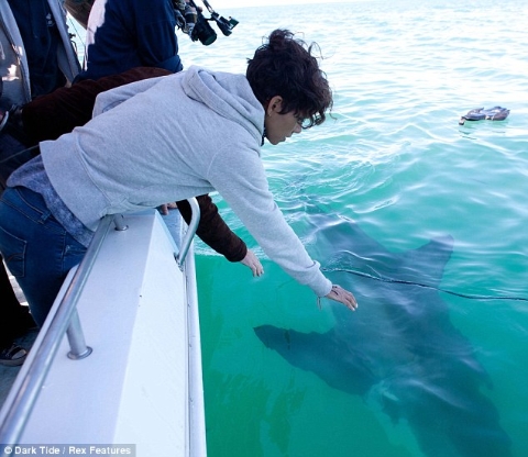 |               "Miêu nữ" tiếp cận rất sát với cá mập               |