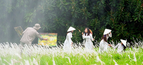| Một trong những đồng cỏ lau đẹp thu hút nhiều người say mê nhiếp ảnh tìm tới sáng tác. |