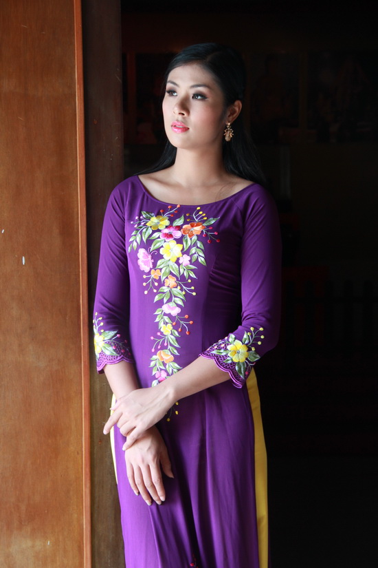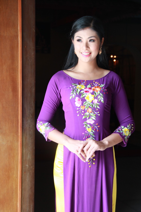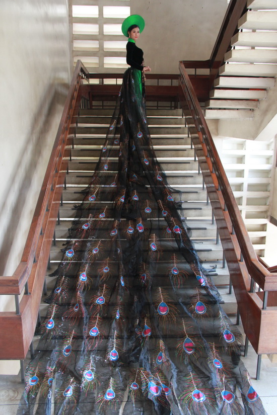 Ngọc Hân diện áo dài thêu công dài... 15m