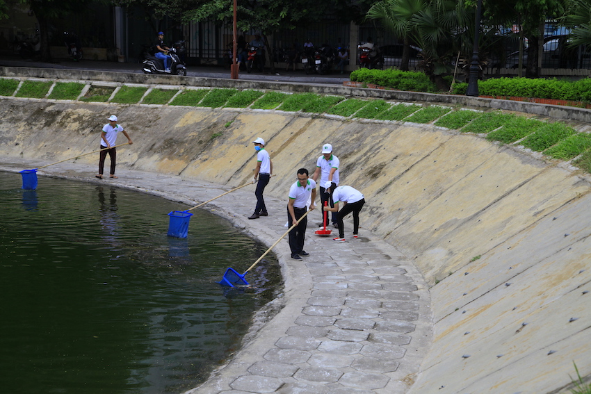 (16:38:54 PM 23/09/2017)Công nhân viên chức của Quỹ thu gom rác ở hồ Ngọc Khánh