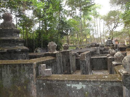 | Phần mộ của những vị quan thái giám triều Nguyễn năm xưa được chôn cất trong khu “nghĩa trang thái giám” nằm trong khuôn viên chùa Từ Hiếu - Ảnh: Hồng Trần |