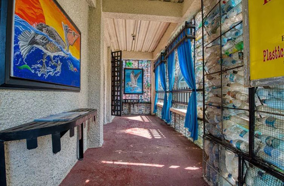 Một căn nhà xây từ chai nhựa ở Làng chai nhựa. Cần trung bình 14.000 chai nhựa để thi công căn nhà 100m2