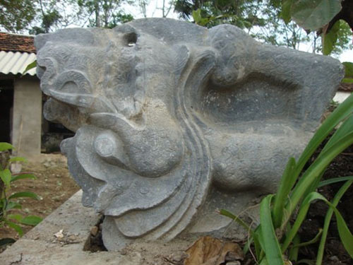 | Đầu rồng đá vừa được phát hiện tại Thành nhà Hồ |