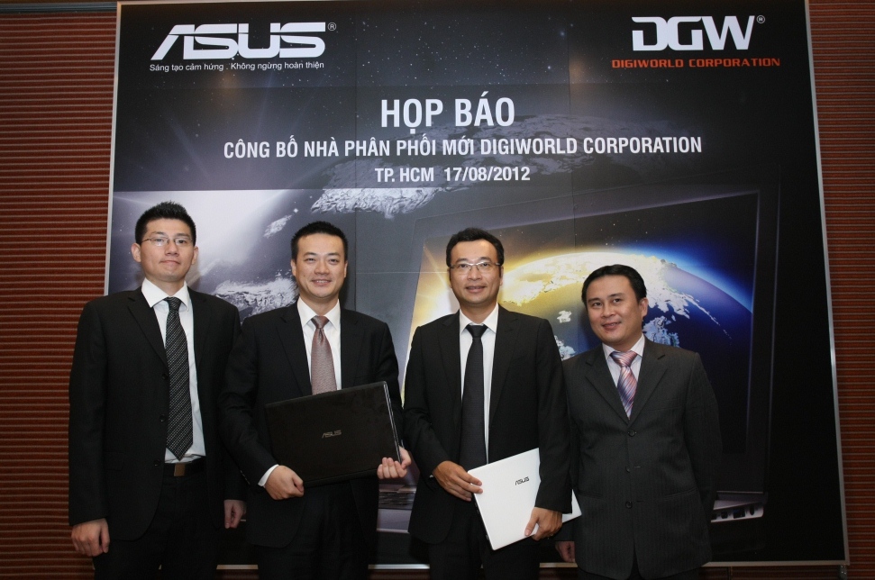Tại Việt Nam, thương hiệu ASUS đã tạo nên tên tuổi với các dòng sản phẩm phong phú dành cho mọi đối tượng khách hàng từ phổ thông đến cao cấp. X series, K series là dòng laptop hiệu năng cao, thiết kế trẻ trung đa sắc màu dành cho HS-SV và những người trẻ tuổi. N series là dòng máy tính giải trí đa phương tiện được đánh giá hàng đầu trên thị trường hiện nay. G series là dòng laptop thiết kế độc đáo và mạnh mẽ dành cho game thủ. U series là dòng máy tính siêu cơ động. Trong đó ASUS ZENBOOK™ & ZENBOOK™ Prime là 2 dòng Ultrabook™ gây ấn tượng cho người tiêu dùng ngay từ những ngày đầu ra mắt và tạo sóng trên thị trường công nghệ trong suốt 2 quý vừa qua. Bên cạnh đó, các dòng máy tính bảng sáng tạo, hiệu năng cao như Transformer Pad, Transformer Prime cũng là các sản phẩm có lượng tìm kiếm kỷ lục trên các công cụ tìm kiếm và chiến thắng thuyết phục trong nhiều hạng mục giải ở các sự kiện công nghệ trong nước và quốc tế. Bắt nhịp thị trường nhân mùa tựu trường đón năm học mới, thông qua nhà phân phối DGW, ngoài những sản phẩm tiêu biểu hiện nay, ASUS giới thiệu tới người tiêu dùng Việt bộ đôi sản phẩm ASUS X301A và K45A/ K45VD thế hệ mới với các tính năng công nghệ vượt trội cùng thiết kế trẻ trung, năng động để đồng hành đến trường. Việc hợp tác giữa ASUS & Digiworld sẽ mang đến cho thị trường và người tiêu dùng Việt Nam những sản phẩm công nghệ mới, chất lượng cao cùng dịch vụ ngày một hoàn thiện và tỏa rộng.