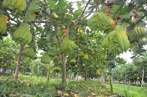 Những vườn "bàn tay phật" sai trĩu quả đã chuẩn bị sẵn sàng đón khách vào chọn mua.