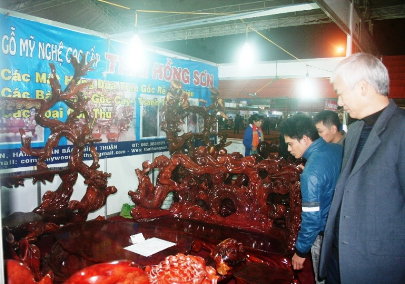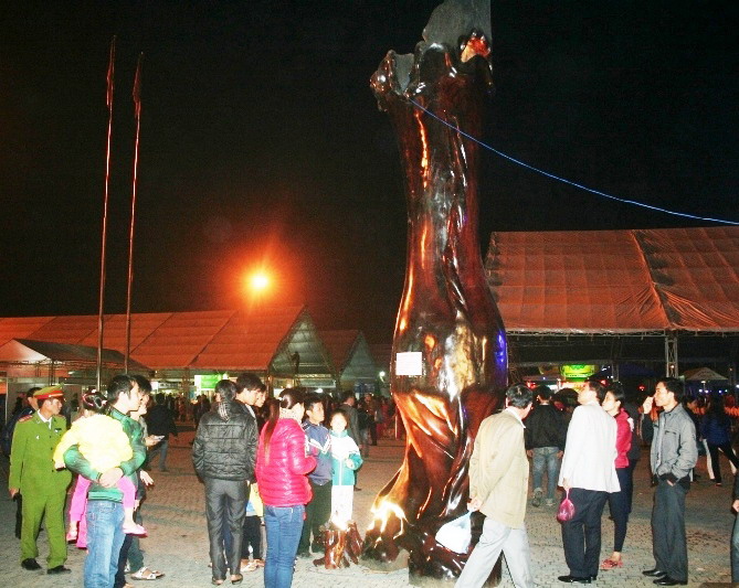 Chiếc lộc bình khổng lồ bằng gỗ Sao Xanh có trị giá 850 triệu đồng của một doanh nghiệp đến từ tỉnh Bình Thuận.