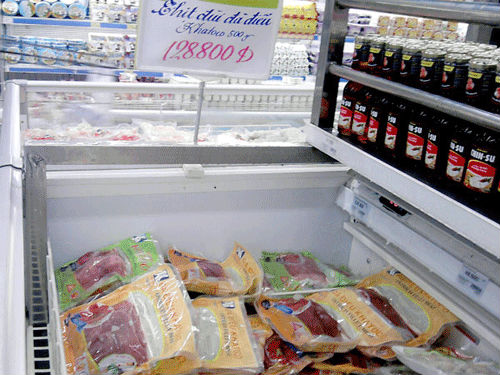| Thịt đà điểu đông lạnh bày bán trong siêu thị Big C. |