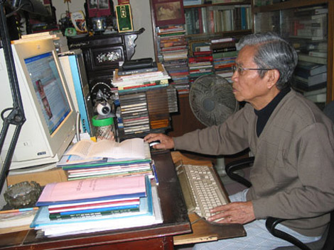 Giáo sư Đình Quang trong căn nhà chưa được cấp sổ đỏ.