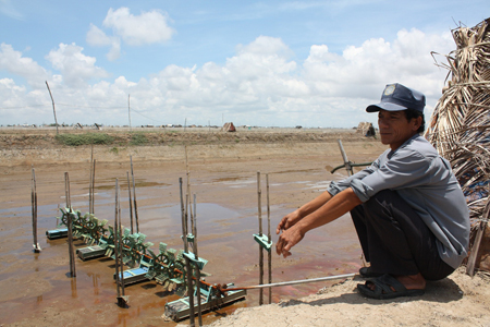 Còn gia đình ông Nguyễn Văn Quắn ở kế bên thả nuôi 2 ao thì cũng có 1 ao tôm xuất hiện bệnh gan. Đợt vừa rồi, gia đình ông bị thiệt hại hơn 60 triệu đồng do tôm chết hàng loạt. Rút kinh nghiệm từ đợt vừa rồi và theo khuyến cáo của các nhà khoa học, các ao tôm của gia đình ông Quắn đều được phơi ao rất kỹ và tuyệt đối không dùng chế phẩm Cypermethrin để diệt giáp xác.