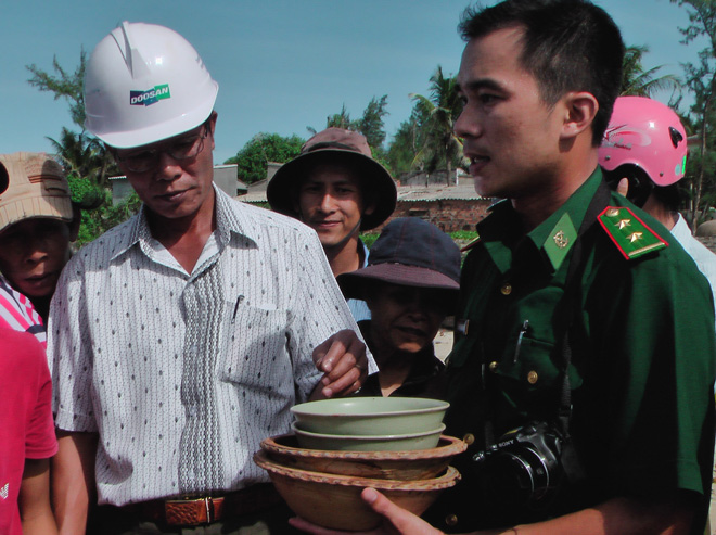| Bộ đội biên phòng Bình Sơn (Quảng Ngãi) thu giữ cổ vật do ngư dân trục vớt - Ảnh: Võ Minh |