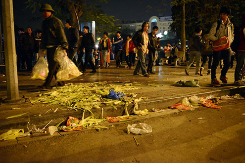 | ... lá ngô, túi nylon vương vãi khắp vỉa hè.