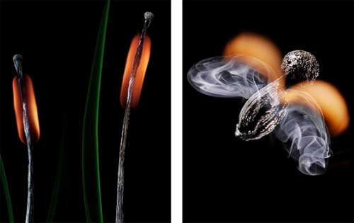 Nhiếp ảnh gia 30 tuổi Stanislav Aristov khéo léo uốn cong que diêm để tạo hình trước khi châm lửa. Hình dạng của những que diêm cháy dở, hình ảnh ngọn lửa hay cách đám khói bốc lên tạo thành những hình thù đặc biệt, không khỏi làm người xem trầm trồ thán phục.
