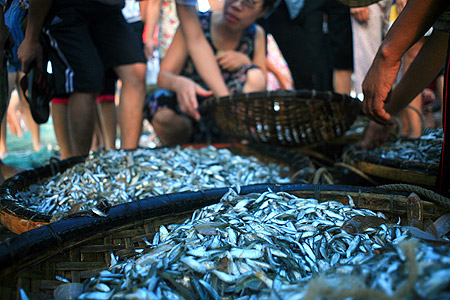 | Tuy nhiên, lưới vét mắt nhỏ chỉ hầu như đánh bắt được các loại cá nhỏ, nếu muốn tìm các sản phẩm lớn hơn thì du khách phải tìm đến những địa điểm khác của chợ vồ. |