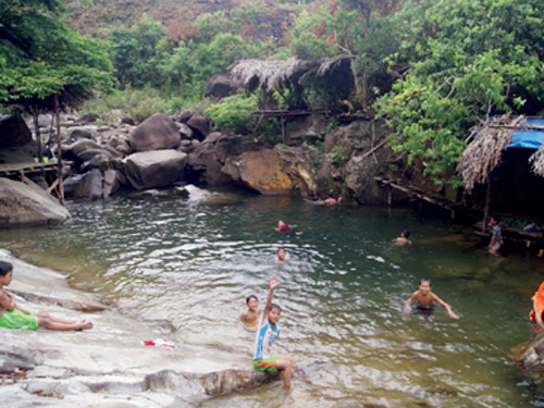 Các món ăn được phục vụ ở đây cũng đơn giản và gần gũi như cá trê, ếch, gà, kỳ nhông; một vài dịch vụ thiết yếu khác như cho thuê áo quần tắm, áo phao, phao bơi… Du khách khi đến đây có thể tắm ở các hồ bên dưới hoặc ngược lên đầu nguồn, thoả thích tìm hiểu thiên nhiên và tự do ngâm mình trong dòng nước mát để tận hưởng cảm giác thư thái, thoải mái, dễ chịu.
