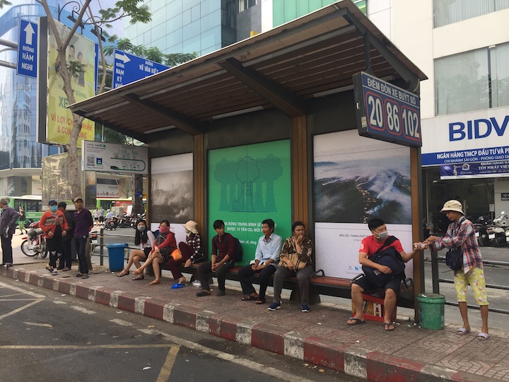 Triển lãm ảnh về ô nhiễm không khí tại trạm xe buýt Hàm Nghi TP.HCM