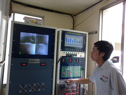 (12:49:54 PM 12/09/2011)Kỹ thuật viên theo dõi quá trình xử lý nước thải bằng năng lượng mặt trời