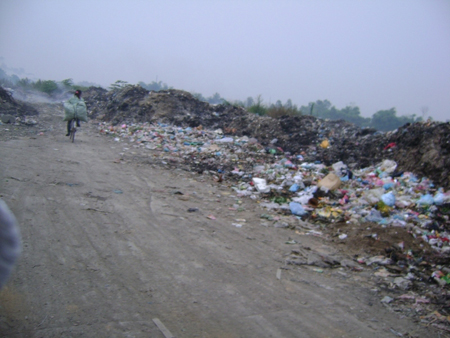 | Dọc các tuyến đường ở xã Phong Khê là những bãi rác ngập ngụa. |