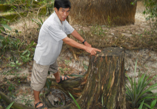 | Khi hỏi về việc thi hành án, ông Nguyễn Mân, đã 90 tuổi, chỉ nói: "Còn mấy đoạn cây, ai muốn lấy về làm củi thì cứ lấy". |