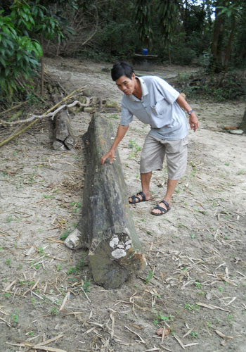 | Một đoạn của cây dương liễu được cha ông Mân chở về bỏ trong sân nhà bị mục nát. |
