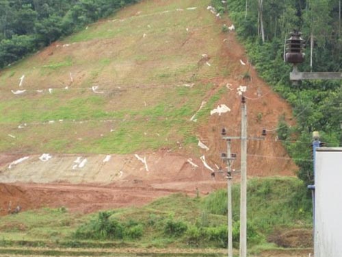 Trong tiêu chuẩn kỹ thuật của một dự án, trước khi trồng cỏ, phải thi công một lớp phủ dày 10cm bằng vật liệu đất hữu cơ có trộn các loại phân, để cỏ phát triển tốt, bền vững, và sau một thời gian thi công, rễ cỏ ăn sâu xuống ta luy đường, nhằm bảo vệ chống xói mái ta luy. Tuy nhiên, ở dự án này, nhà thầu GRBC đã chọn giải pháp gieo hạt trực tiếp.