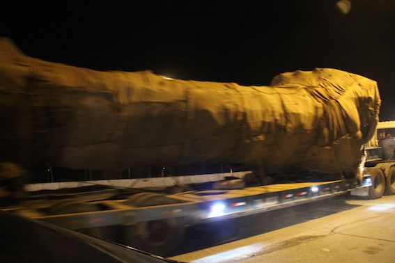(22:08:12 PM 29/03/2018)Tối 26/3, người dân huyện Cẩm Xuyên (Hà Tĩnh) ngỡ ngàng thấy xe đầu kéo BKS 73C-03464 và rơ moóc BKS 00338DN chạy trên QL1A chở theo 1 cây gỗ khủng có dấu hiệu vi phạm luật giao thông: quá tải, quá khổ và không được che chắn đủ an toàn khi lưu thông.