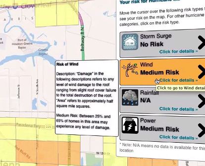 Chiếc máy đo bão trên được phát triển bởi một nhóm thuộc đại học Rice, có dữ liệu từ Dịch Vụ Thời Tiết Quốc Gia và thông tin chi tiết của khoảng 1,2 triệu ngôi nhà ở Houston. Rất nhiều mô hình máy tính phức tạp làm việc để đưa ra dự đoán mối nguy hiểm cho những ngôi nhà này. Cư dân có thể vào trang web, đánh địa chỉ của họ và trang web sẽ hiển thị độ nguy hiểm của bão, gió, lượng mưa và tình trạng điện (cúp điện) tại khu vực theo thời gian thực.