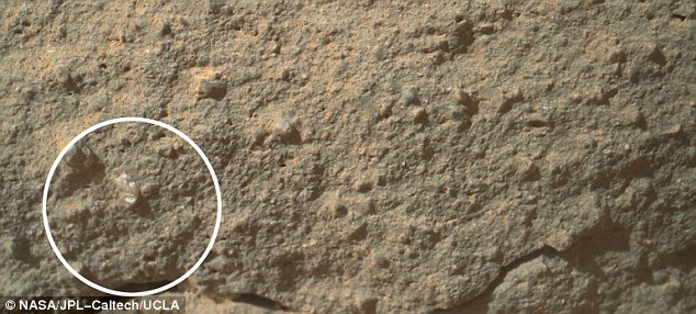 (10:42:35 AM 06/01/2013)Trong bức ảnh xuất hiện một khóm trắng nom như thể nhụy hoa. Theo các chuyên gia vũ trụ NASA, khóm trắng này không phải là rác bởi nó có vẻ như đang mọc lên từ bề mặt đá của sao Hỏa. Tuy nhiên, họ cũng chưa thể khẳng định chắc chắn đó có phải là một loài thực vật hay không.