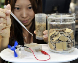 Tại hội nghị Eco-Products ở Tokyo, Sony đã thực hiện một thí nghiệm tại chỗ, theo đó giấy vụn được bỏ vào hỗn hợp nước chứa enzyme và sản sinh ra dòng điện, có thể cung cấp năng lượng đủ cho một cây quạt điện nhỏ chạy được. Phía Sony cho biết cơ chế trên tương tự như cách con mối nhai và tiêu hóa gỗ. Trong trường hợp này, các enzyme “ăn” giấy vụn và tạo ra các hạt điện tử lẫn ion hydrogen. Nếu ion hydrogen hòa lẫn với không khí để tạo ra nước, các hạt điện tử tạo ra dòng điện giống như những loại pin thông thường hiện nay.