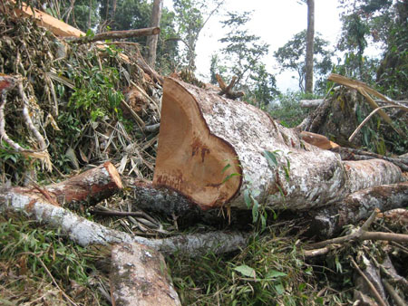 Nếu như chỉ đứng ở trên đường nhìn lên thì rừng nghiến Mai Long có vẻ rất bình yên, nhưng khi luồn rừng chui vào mới thấy rừng nghiến bị tàn phá một cách nghiêm trọng. Rất nhiều cây nghiến có đường kính trên 1 m đã bị đốn hạ nằm trơ gốc với cành, lá vừa mới héo. Đáng ngại nhất là lâm tặc không chỉ chặt những cây nghiến to mà ngay cả những cây nhỏ chỉ 20 - 30 cm chúng cũng không tha. Qua tìm hiểu chúng tôi được biết, từ đầu năm 2010 đế nay tình trạng khai thác gỗ nghiến trái phép xảy ra nóng bỏng nhất là tại các xóm Khuổi Hẩu, Lũng Thích, xã Mai Long nhưng không được ngăn chặn kịp thời. Khi các cơ quan chức năng pháp hiện thì rừng nghiến gần như đã tan hoang.