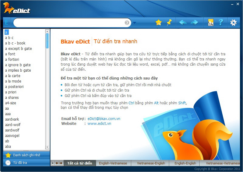 Phần mềm Từ điển tra nhanh eDict được Bkav cung cấp miễn phícho người dùng