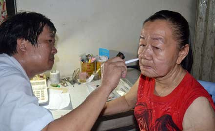 Hơn 15h ngày 4/10, bác sĩ Hoàng Văn Minh, Trưởng phòng khám da liễu Bệnh viện Đại học Y dược TPHCM, và bác sĩ Nguyễn Thanh Sơn, phụ trách phòng khám da liễu Bệnh viện Đa khoa tỉnh Bến Tre - cùng các PV có mặt tại nhà chị Nguyễn Thị Phượng ở Giồng Trôm, Bến Tre.