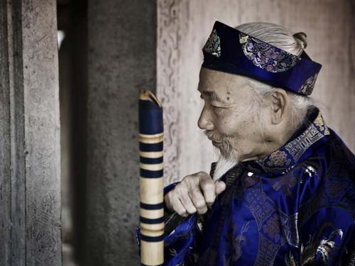 | Cụ già trong Văn miếu Quốc tử giám. |