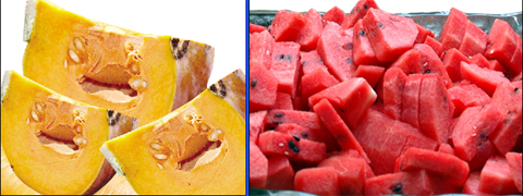Dưa hấu: Trong dưa hấu có chứa nhiều chất dinh dưỡng giá trị, đặc biệt giàu các chất khoáng vi lượng như canxi, sắt, magie, axit folic, là một sinh tố nhóm B cần cho sự tạo máu tác dụng hạ nhiệt, hạ khí, lợi tiểu, giải độc cho gan, tốt cho phụ nữ mang thai.