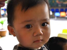 Bé trai với mắt phải bị xuất huyết. Ảnh: Thiên Chương.