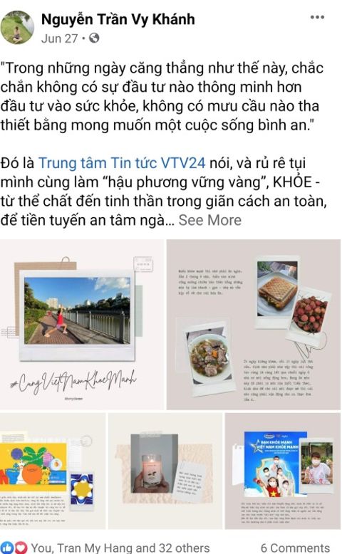Một trong bài đăng của Vy được sự ủng hộ nhiệt tình là cách bạn tham gia ủng hộ cho chiến dịch “Bạn Khỏe Mạnh, Việt Nam Khỏe Mạnh” để lan tỏa lối sống khỏe mạnh, tích cực và qua đó góp vắc-xin phòng Covid-19 cho trẻ em.