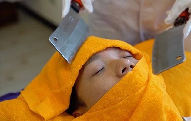 Nhân viên dùng dao vỗ lên khắp mặt và cơ thể khách để họ được thư giãn