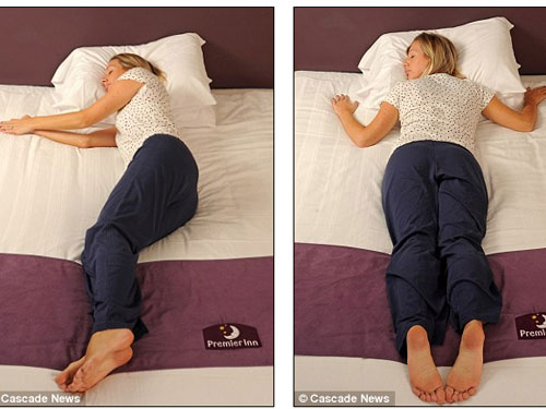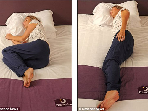 Tư thế ngủ cuộn tròn như thai nhi (trái) và nằm thẳng qua một bên
