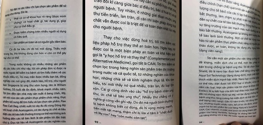 3 trang sách trong cuốn “Ung thư không phải là chết” được đưa ra phản biện. Ảnh: Ruybangtim