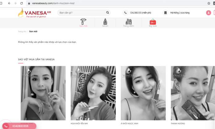 Website vanesabeauty.com hiện quảng cáo và bán 12 sản phẩm mới có xuất xứ từ Hàn Quốc