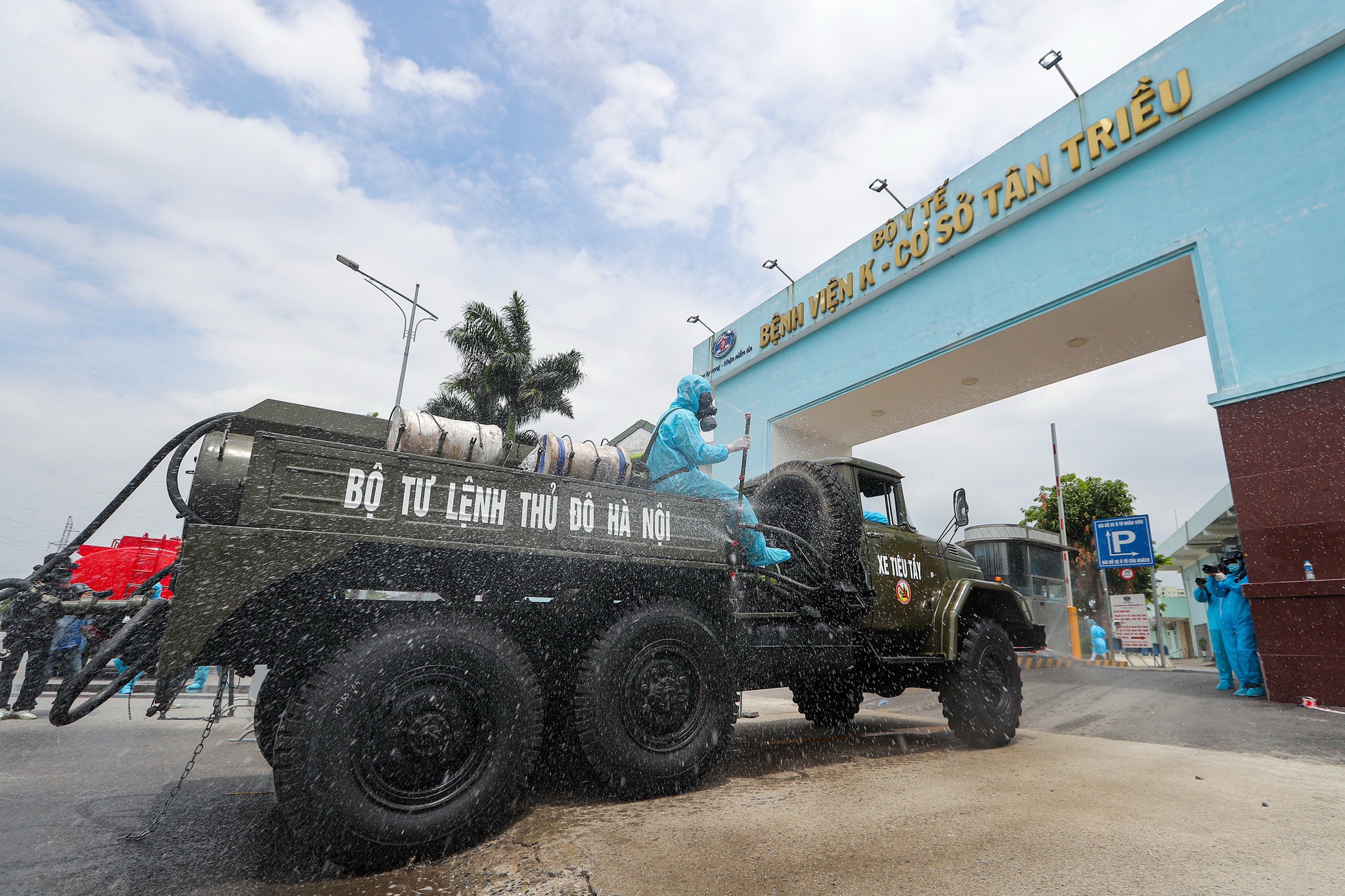 Phong tỏa và phun khử khuẩn ở Bệnh viện K cơ sở Tân Triều ẢNH: ĐẬU TIẾN ĐẠT