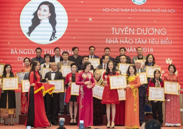 Bà Nguyễn Thu Trang lên nhận danh hiệu Nhà hảo tâm tiêu biểu 2018 với nghi vấn hàng giả với lô mỹ phầm trị giá 11 tỷ