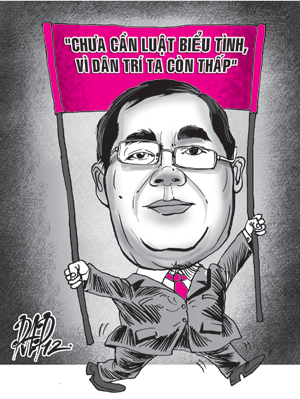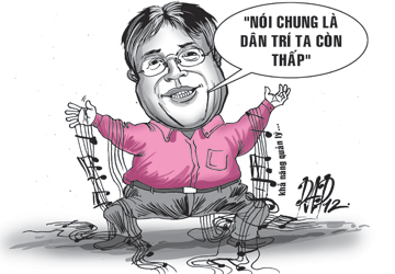 Đầu năm, ông nghị Hoàng Hữu Phước phát biểu: “Chưa cần luật biểu tình, vì dân trí ta còn thấp”. Cuối năm, ông Thống đốc Ngân hàng Nhà nước Nguyễn Văn Bình lại cho rằng: “Do dân trí thấp, nên Nhà nước phải nuôi báo cô mấy ngân hàng xấu”. Ngày xưa dân mình cũng chẳng mấy khi đến ngân hàng. Mãi năm 1951 mới có Ngân hàng Nhà nước. Vậy nên không thấy có bằng chứng lịch sử nào ghi lại lời một quan chức ngân hàng chê dân trí thấp nên Nhà nước phải nuôi báo cô mấy ngân hàng làm ăn thua lỗ. Chưa hết, trên lĩnh vực văn hóa, trước tình trạng chân dài váy ngắn hở hang biểu diễn, ông cục trưởng quản lý biểu diễn lên TV tuyên bố "nói chung là dân trí chúng ta còn thấp..." đến nỗi một nhà văn hóa chịu hết thấu phải lên tiếng: Việc quản lý của ông ấy thấp nên mới để xảy ra tình trạng âm nhạc như thế. Nhờ sống chung với cái dân trí thấp nên nay ông cục trưởng đã... thăng chức thứ trưởng (!).